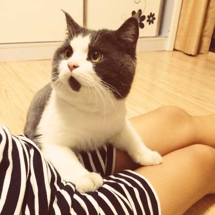 Banye, a British Shorthair from China, became an internet sensation due to the black patch of fur under his mouth, giving him a permanent "OMG" expression.