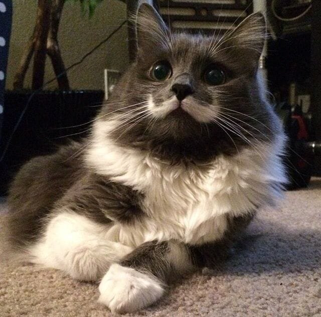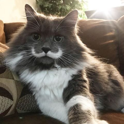 Hamilton, an internet-famous cat, is known for his distinctive white mustache, which gives him a hipster look. His unique facial markings and playful personality have made him a social media sensation.